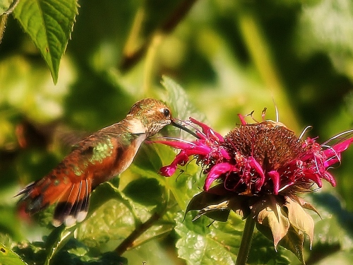 The Community Gardens were abuzz with hummingbirds. There were several ANNA'S HUMMINGBIRD and at least 2 RUFOUS. Might have been 6-8 hummingbirds in the gardens all told, and there were lots of conflicts (including interspecies jabbing over ownership of particularly nice flowers).
