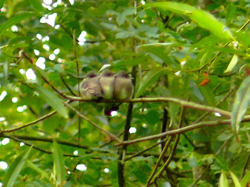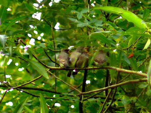 Three baby Western Wood-Pewees sitting calmly and quietly together... |