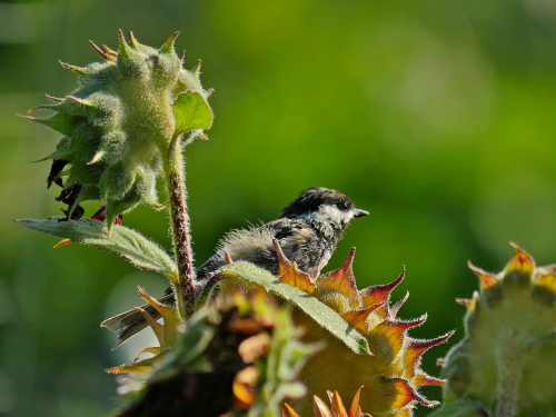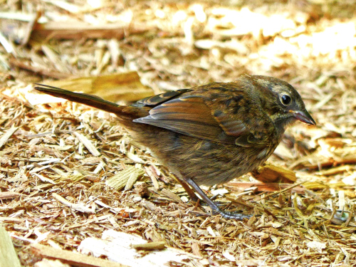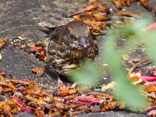 Juvenile Spotted Towhee just getting a few rufous feathers. Photo by Ollie Oliver |