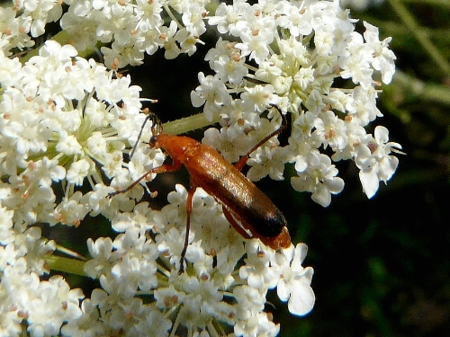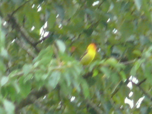 We had pretty good looks (at least some of us did) at a RED-EYED VIREO, as well as WARBLING VIREO, along the southwest edge of the Dog Meadow. We also had a female WESTERN TANAGER and a very yellow ORANGE-CROWNED WARBLER, looking entirely different from the gray-headed ones last week.