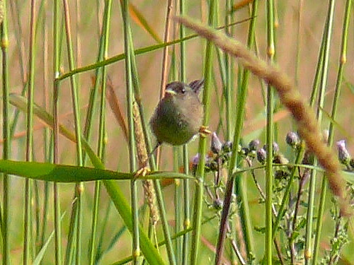About a dozen of us met this morning at 6:00 a.m. to bird a rather quiet Marymoor under heavy overcast skies. There wasn't much about, but the more we scoured the bushes, the more we found. We proceeded slowly, because there were lots of unfamiliar bird calls and song fragments. In most cases, these were traced to various juvenile birds trying out their voices. We had BEWICK'S WRENS making barely recognizable broken fragments of songs and calls, a BROWN-HEADED COWBIRD juvenile sounding like a calling Black-headed Grosbeak, and other vocal oddities. It made for slow going, as we kept having to ask ourselves "what the heck was that???"