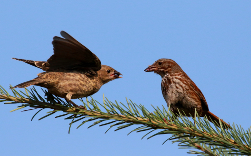 We had baby BROWN-HEADED COWBIRDS doing their best to insist on getting fed by: WILLOW FLYCATCHER, WARBLING VIREO, COMMON YELLOWTHROAT, WILSON'S WARBLER, and, I think, SONG SPARROW.