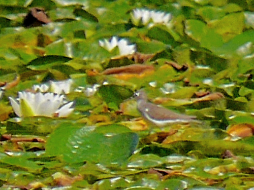 Spotted Sandpiper Flock of 6 on lily pads at lake