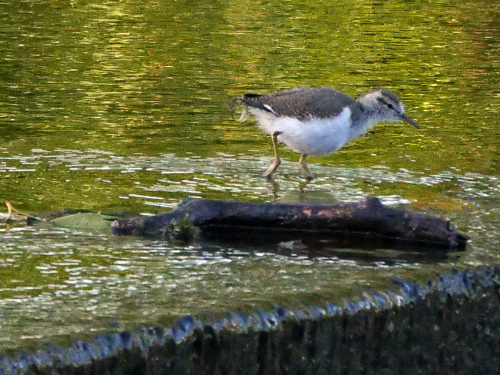 Spotted Sandpiper 4 on the railing of the lake platform, 1 at weir