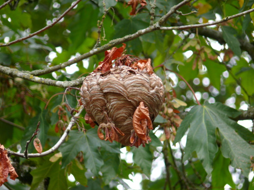 Bald-faced Hornet nest, in Bigleaf Maple northeast of the mansion. |