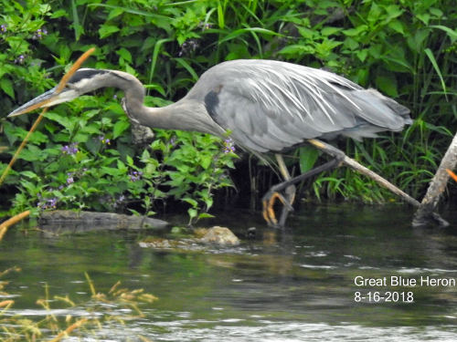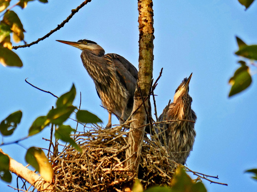 - Great Blue Heron - A couple of birds making the Grum-grum-grum calls from the heronry were probably fledged young being overly hopeful that a return to the nest would result in food