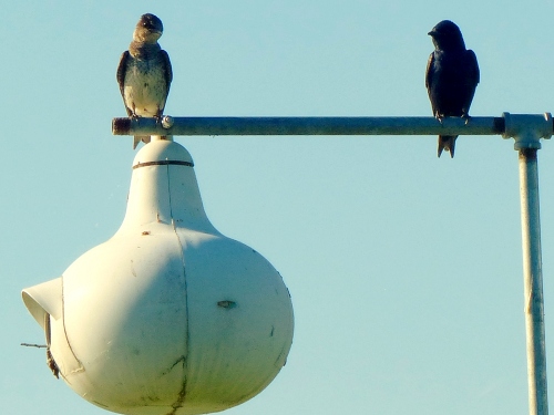 - Purple Martin - About 15 in snags across the slough plus two more at the gourds
