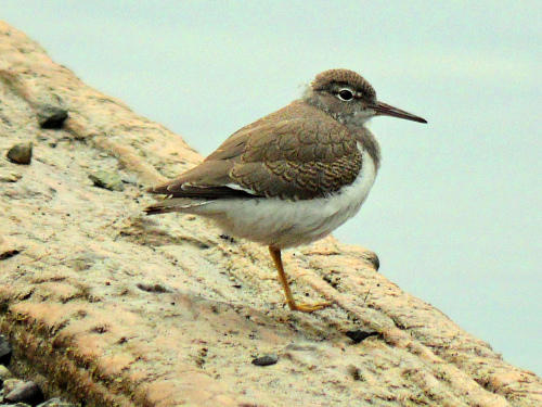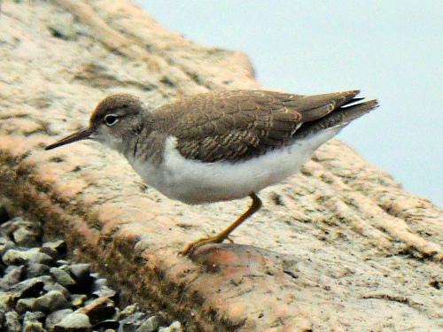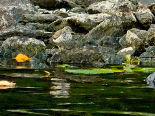 - Western Sandpiper - Pretty sure of ID - A tight flock of 6 peeps flew past the Lake Platform, appearing to have pretty strong wingstripes and longer bills