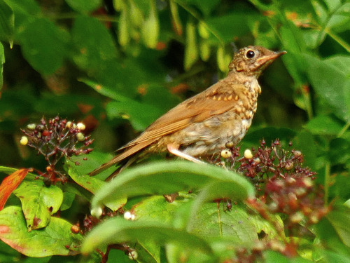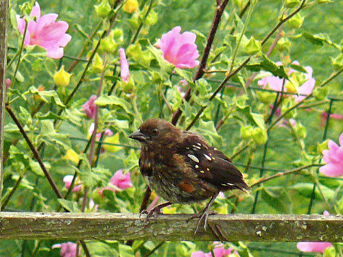 Juvenile Spotted Towhee just getting a few rufous feathers. Photo by Ollie Oliver |