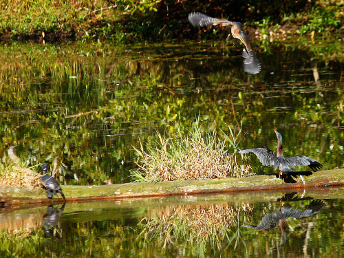 - Gadwall - Female with three males in the slough. The males were displaying with head's puffed up. Lots of neck stretching and posing