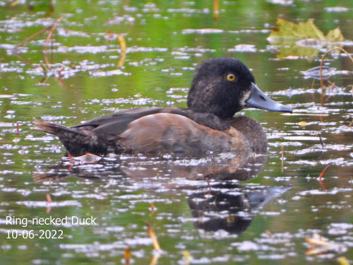 - Ring-necked Duck - lone bird continues in slough. Looks like a male still in eclipse