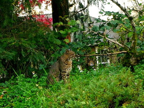 A lot of the birds might have been battening down the hatches, I don't know. Things were pretty quiet for a long time. We did have a huge set of flocks (~500) CACKLING GEESE overhead, with some landing. And later we had an enormous mixed flock of BUSHTIT, BLACK-CAPPED CHICKADEE, one or two CHESTNUT-BACKED CHICKADEE, RUBY-CROWNED KINGLET, GOLDEN-CROWNED KINGLET, and a couple of YELLOW-RUMPED WARBLERS and BEWICK'S WRENS. That flock, or other(s) with identical constituents, seemed to follow us around (or we them) for quite some time.