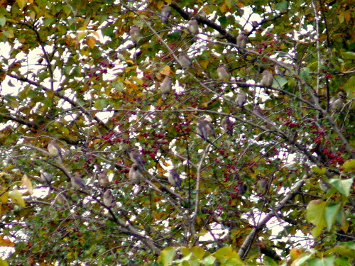 At least 20 Cedar Waxwings near the weir |