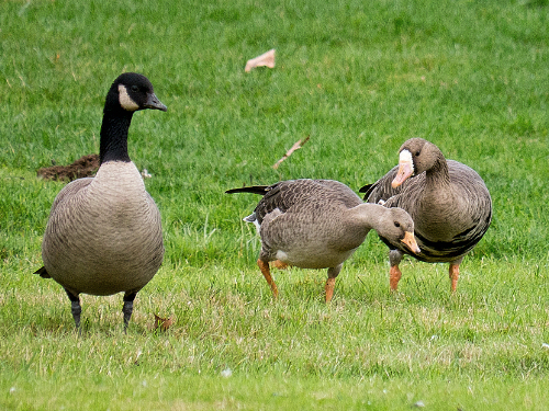 Greater White-fronted Goose 2 with Cacklers near the climbing rock