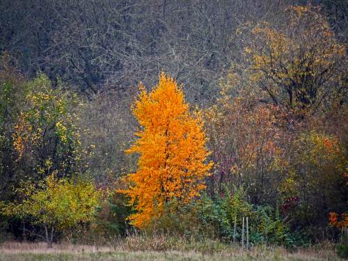 We had good weather for our walk this morning, as the rain held off until the afternoon. At times, it was even sunny, and it warmed from the low 30's to the low 50's during our walk. Many of our regulars were out of town today, but our group was supplemented by a large number of people who had Veteran's Day off from work, and it was nice to see some of our infrequent visitors, as well as a few new people.