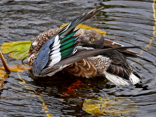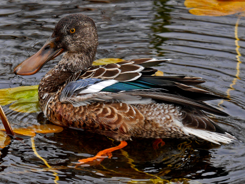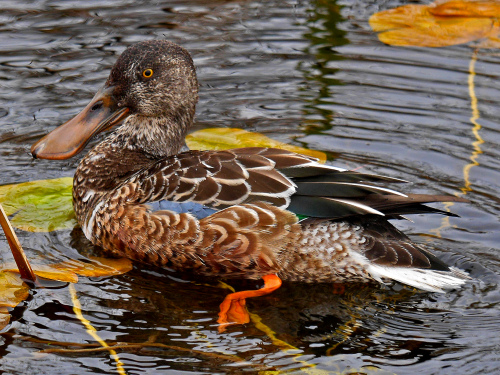 - Northern Shoveler - Four in flyby, one more at the lake. First of Fall (FOF)
