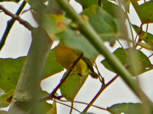 | It was gray and misty, but it was warm and it didn't rain, and the fog was high enough that we were under it. It was windless, and the air had that heavy, damp quality which makes road noise carry and birds to skulk. There were long stretches where we only got glimpses of birds, without any good looks. But it ended up being a pretty nice day.