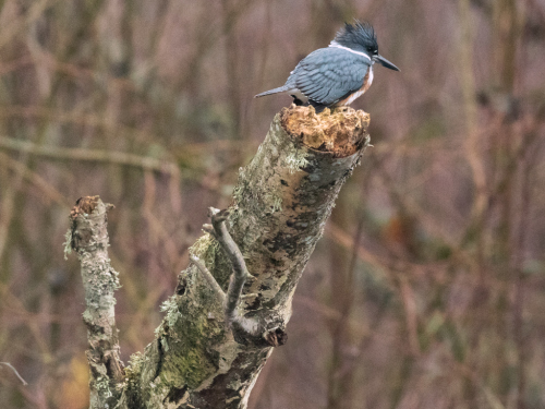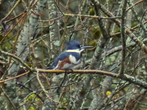 Another day with better weather than we have a right to expect at this time of the year. Temps in the high 40's with no wind or rain. It was a rather dark overcast, though, which made viewing a bit difficult. It was alternatingly birdy and quiet, except for the robins. There were just about always robins. Possibly even too many robins.