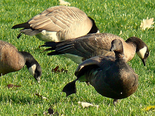 Brant goose with Cackling Geese. Photo by Ollie Oliver