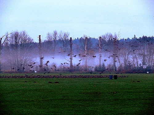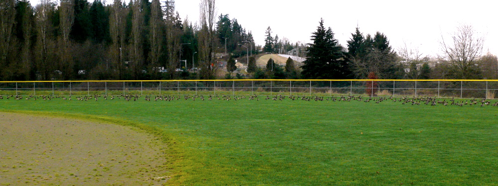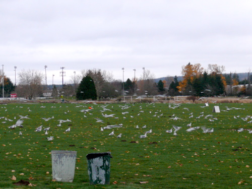 Some of the ~1000 Mew Gulls on the soccer fields |