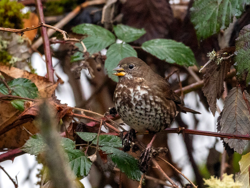 Fox Sparrow Numerous, in large groups - maybe 20 overall