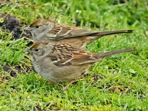 - WHITE-THROATED SPARROW - Three seen simultaneously under the NW corner of the heronry. One had been seen moving away from that area a minute before, which might make four birds