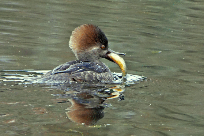 one Hooded Merganser at the Rowing Club, a and a flyby small flock of