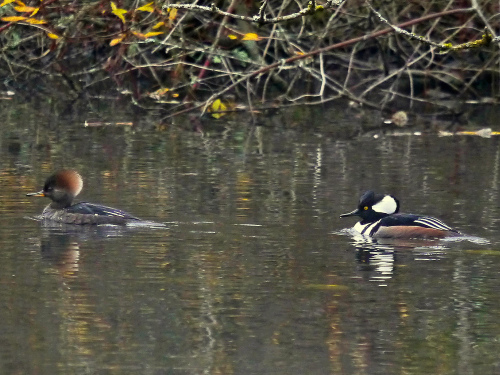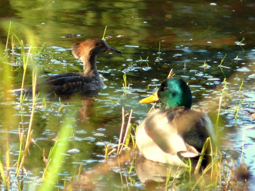 Female Hooded Merganser at the Rowing Club, with male Mallard