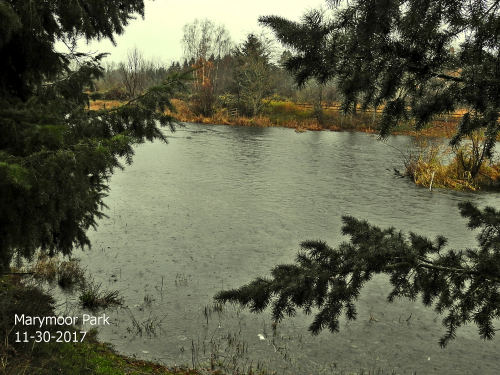 UPDATE 12/1/2009: There was a single BRANT with a flock of Cackling and Canada Geese in the NE part of the park, near the baseball diamonds. The geese flew out around 12:30. I also had a NORTHERN SHRIKE. A couple of Lincoln's Sparrows, and four American Coots were the other species I had there today that I did not see Monday.