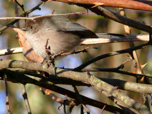 The picnic shelter SE of the mansion is surrounded by conifers, and when we stopped there, they were hopping. A flock of GOLDEN-CROWNED KINGLETS caught our eyes first, but they were quickly followed by a flock of BUSHTITS. Next up were two BROWN CREEPER. We managed to find one or two CHESTNUT-BACKED CHICKADEES, a RUBY-CROWNED KINGLET, and a TOWNSEND'S WARBLER.