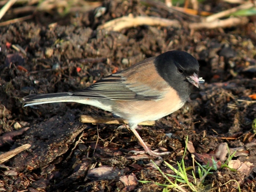 Northeast of the mansion, there were large numbers of American Robin, Dark-eyed Junco, and Golden-crowned Kinglets on the ground, as well as a few chickadees. Alas, there was no repeat of the Mountain Chickadee which was seen in a very similar flock two weeks ago.
