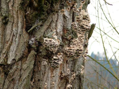 Fungi on an alder snag. This fungus shows just days or weeks before the snag falls.