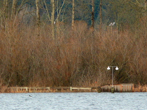 A late scan of the lake turned up the only COMMON MERGANSERS (5), WESTERN GREBE (5), and HORNED GREBE (1) of the day, and was highlighted by a flyover of two calling TRUMPETER SWANS.