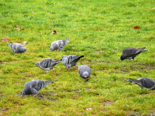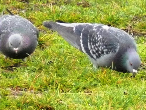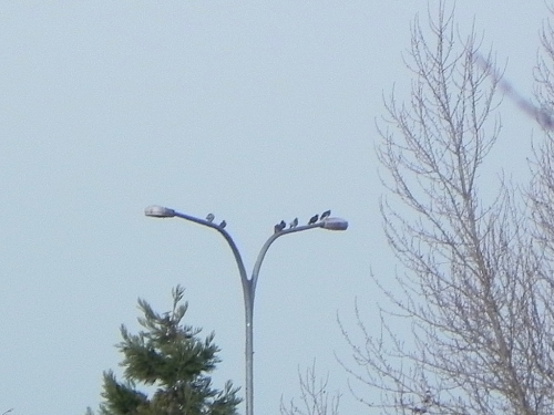 Our typical view of Rock Pigeons, on the SR-520 lights. Photo by Michael Hobbs