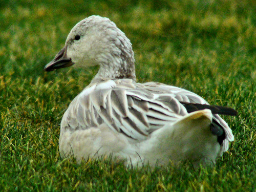 Despite the rain, I made the executive decision to trudge over to the Velodrome, where we found the large flock of CACKLING GEESE, mixed with enough CANADAs to get a good size comparison. There was also an adult GREATER WHITE-FRONTED GOOSE amongst them.