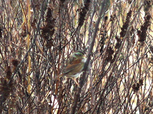 - White-throated Sparrow – one with a huge flock of Zonos east the path below the weir