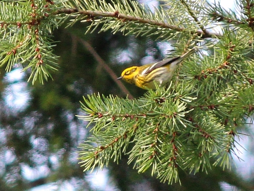 We had a few birds that cooperated - a PURPLE FINCH that landed right above our heads, a GOLDEN-CROWNED KINGLET at about 10 feet, and a BROWN CREEPER that worked the bottom 5 feet of the same tree for several minutes.