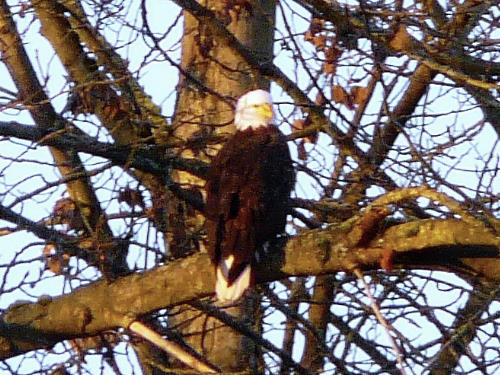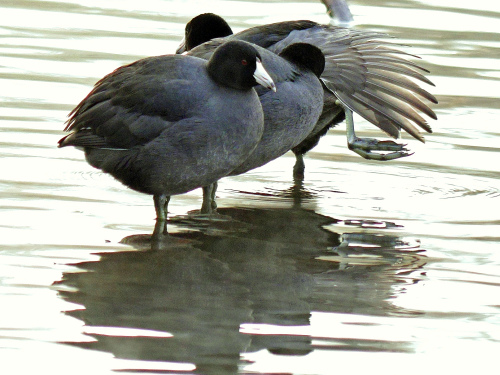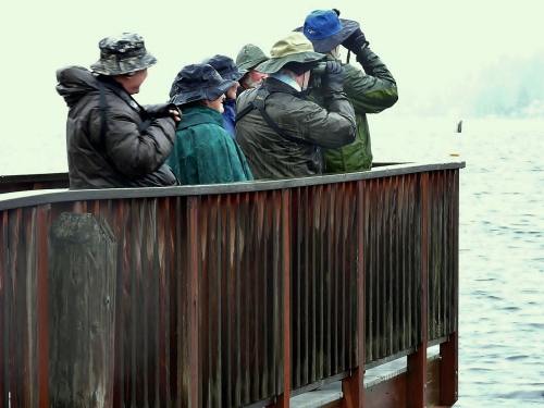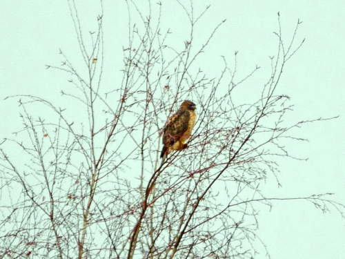 | We had a cold and foggy morning, though eventually the fog lifted exposing a thin overcast, and the temperature got above freezing. A complete lack of wind let us keep tolerably warm, though. But it was pretty quiet, and the fog limited sightings. Still, not a bad day.