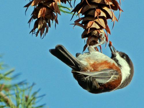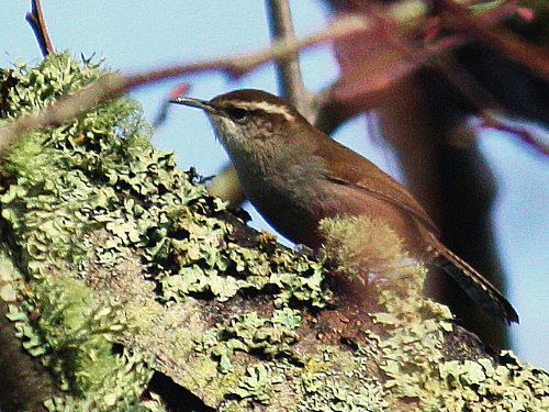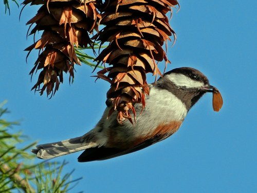 - MOUNTAIN CHICKADEE - Probably the same individual seen in November, high in a tree west of the mansion