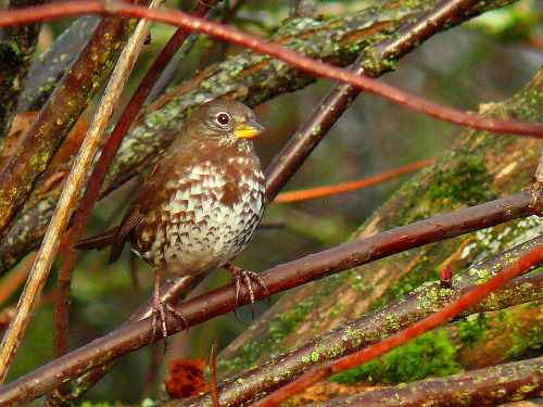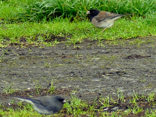 Two gorgeous male PURPLE FINCHES fed at about eye-level for us. FOX SPARROWS and SPOTTED TOWHEES were especially prevalent and visible.