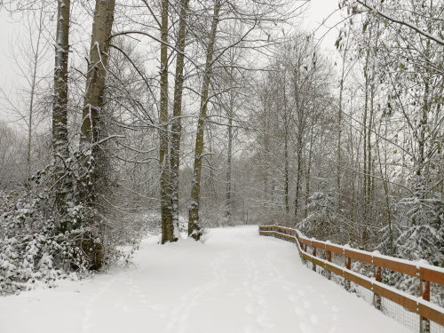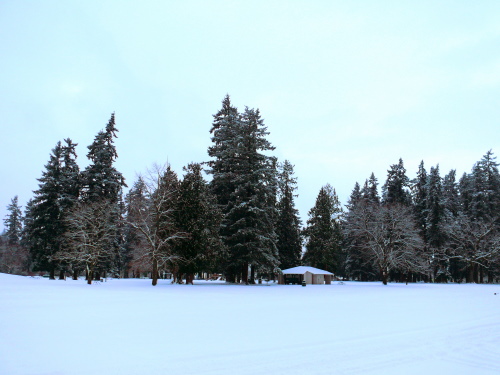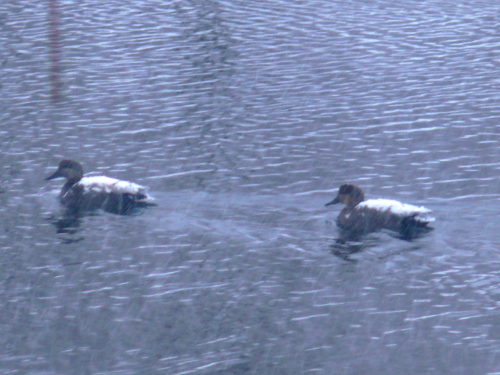 There was six inches of snow when we started, and more falling (about another 2" during the count). The roads were treacherous. I was surprised I wasn't birding alone. But Brian Bell managed to make it down from Woodinville, and Ollie walked down from his house. A beautiful morning, snowing most of the time, and only windy at the end. Birdy too. While the little birds were hard to come by, those we saw gave us great, close looks. Waterfowl numbers were way up, probably because everything else is frozen.