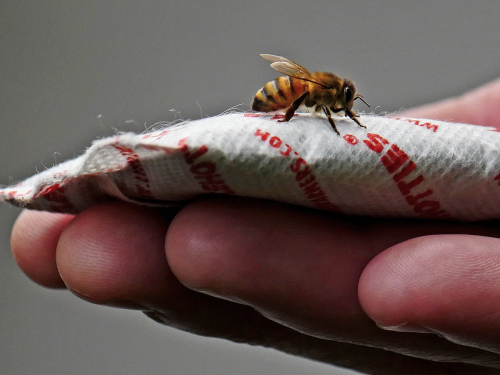Spotted Towhee eating a frozen apple. Photo by Michael Hobbs