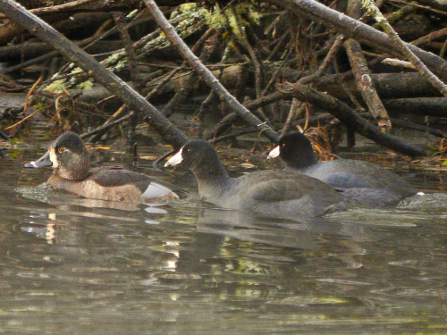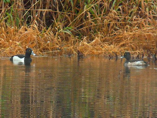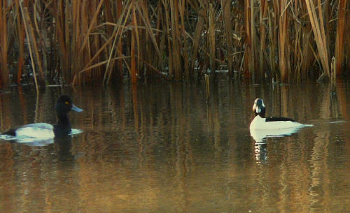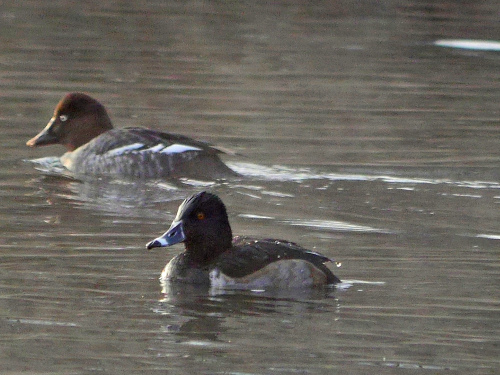 A late scan of the lake turned up two LESSER SCAUP and a HORNED GREBE.