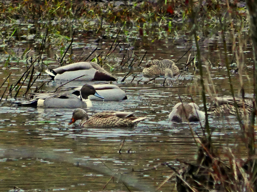 Twelve species of duck, including First-of-the-winter NORTHERN PINTAIL and