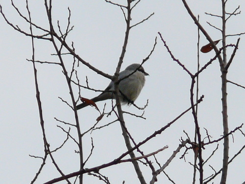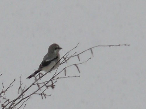 The NORTHERN SHRIKE was hunting in the East Meadow. It chased off a WESTERN MEADOWLARK there.
