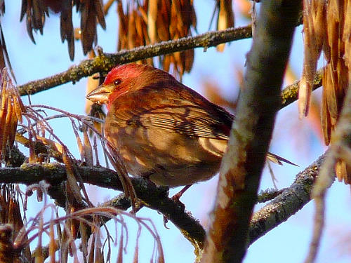 - REDPOLL – Maybe a dozen, mixed with Pine Siskins, in a tree along the slough about 20 yards north of the southern gate of the Dog Area. One or two calling east of the East Meadow