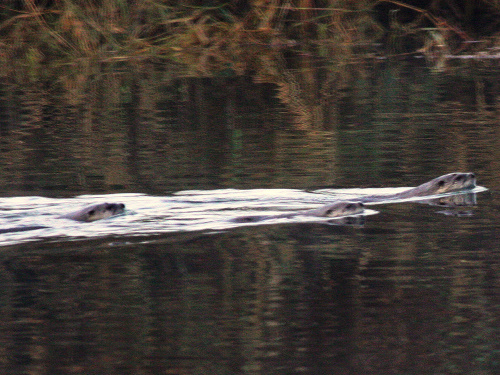Lillian Reis photographed three (of four) River Otters in the slough on 2009-12-18... |