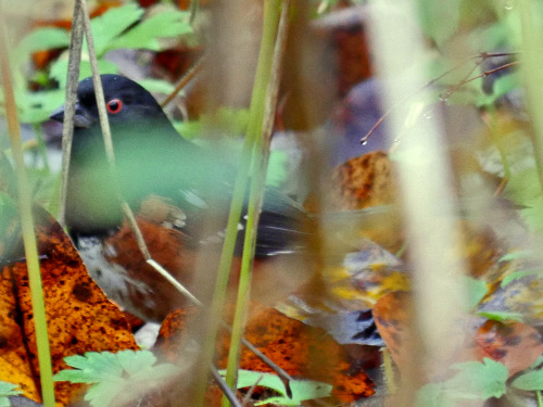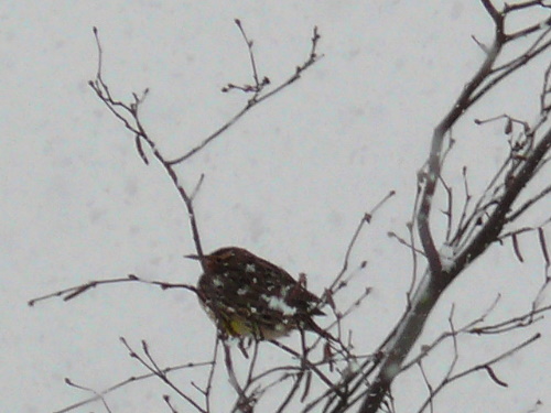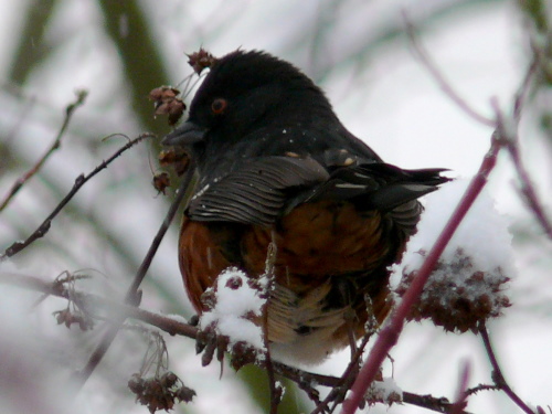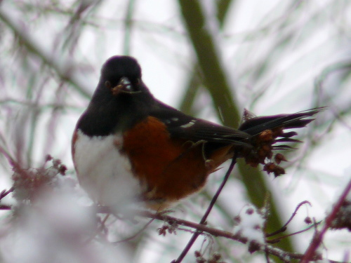 Towhees and Fox Sparrows were especially conspicuous on the snowy day