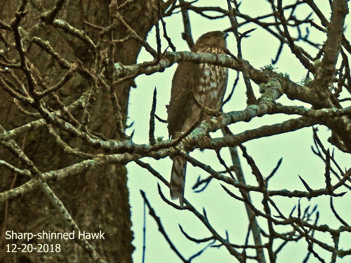 - Sharp-shinned Hawk – juvenile Hairy Woodpecker – at least 1