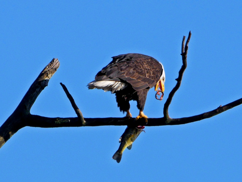 Adult Bald Eagle eating a fish. Photo by Ollie Oliver
